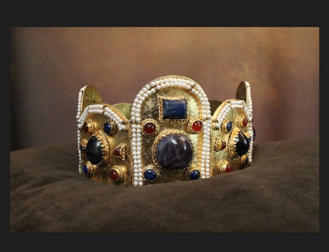 Fonte iconografica di riferimento: Ambito bizantino, Orecchini, oro, perle, zaffiri, c. VI-VII sec., The Metropolitan Museum Of Art, New York City, Acc. Num. 17.190.145